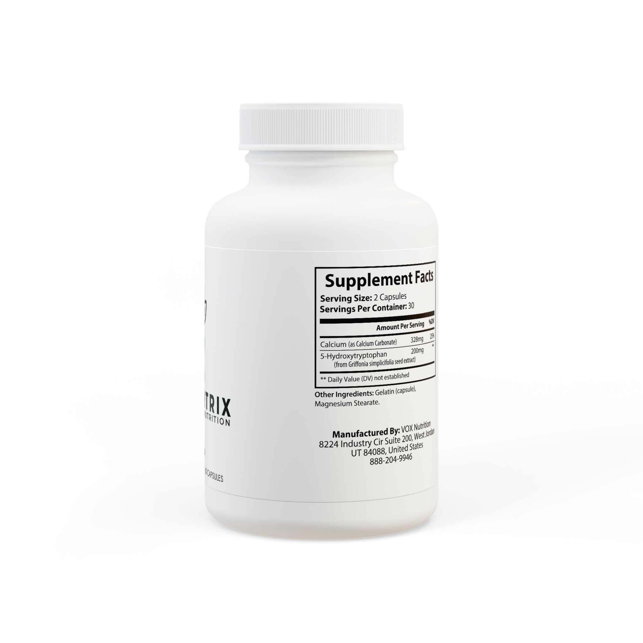 Ingredients: Calcium (as Calcium Carbonate), 5-Hydroxytryptophan (from Griffonia simplicifolia seed extract). Other Ingredients: Gelatin (capsule), Magnesium Stearate.