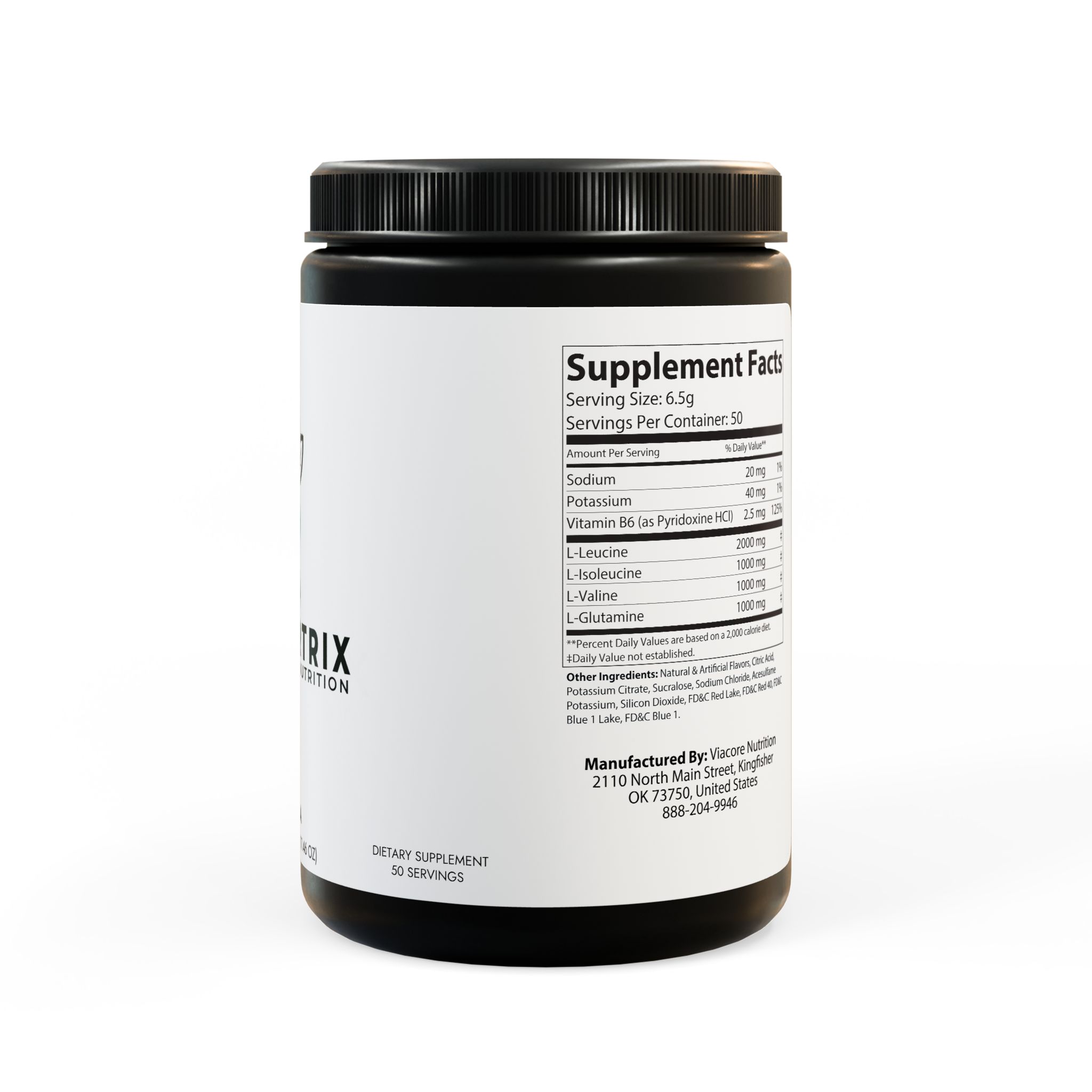 Key ingredients include Sodium, Potassium, Vitamin B6 (as Pyridoxine HCl), L-Leucine, L-Isoleucine, L-Valine, and L-Glutamine.