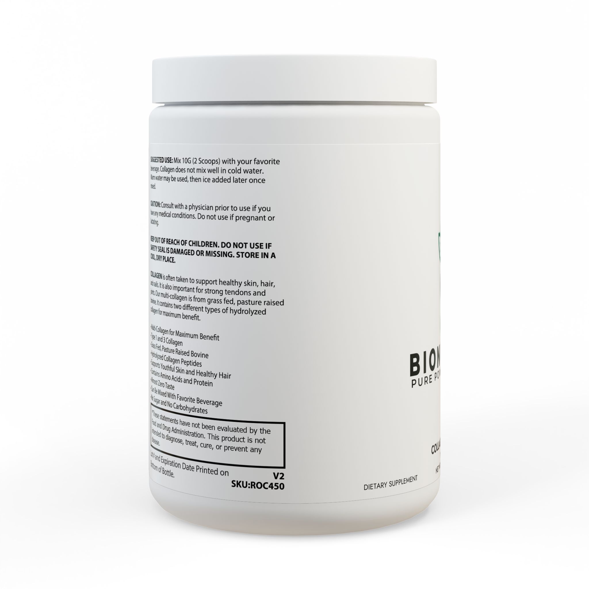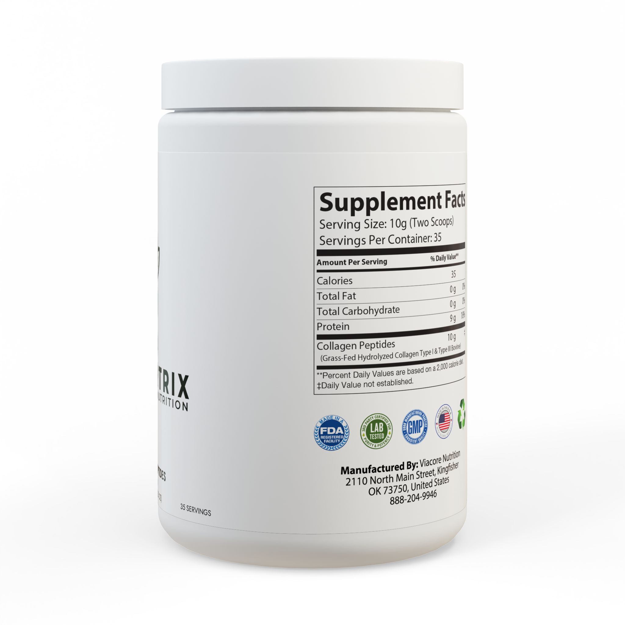 Ingredients: Collagen Peptides (Grass-Fed Hydrolyzed Collagen Type I & Type III Bovine)